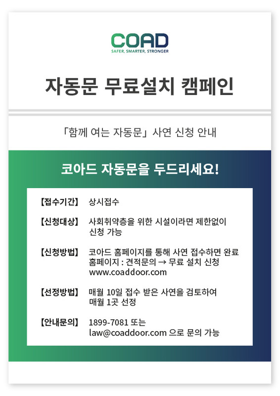 사회공헌공모 코아드 자동문 무료설치 캠페인