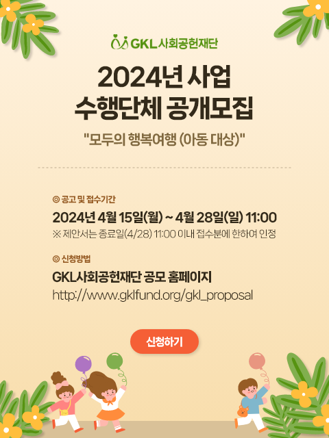 사회공헌공모 [GKL사회공헌재단] 2024년 사업수행단체(아동 대상) 공개모집(~4/28)