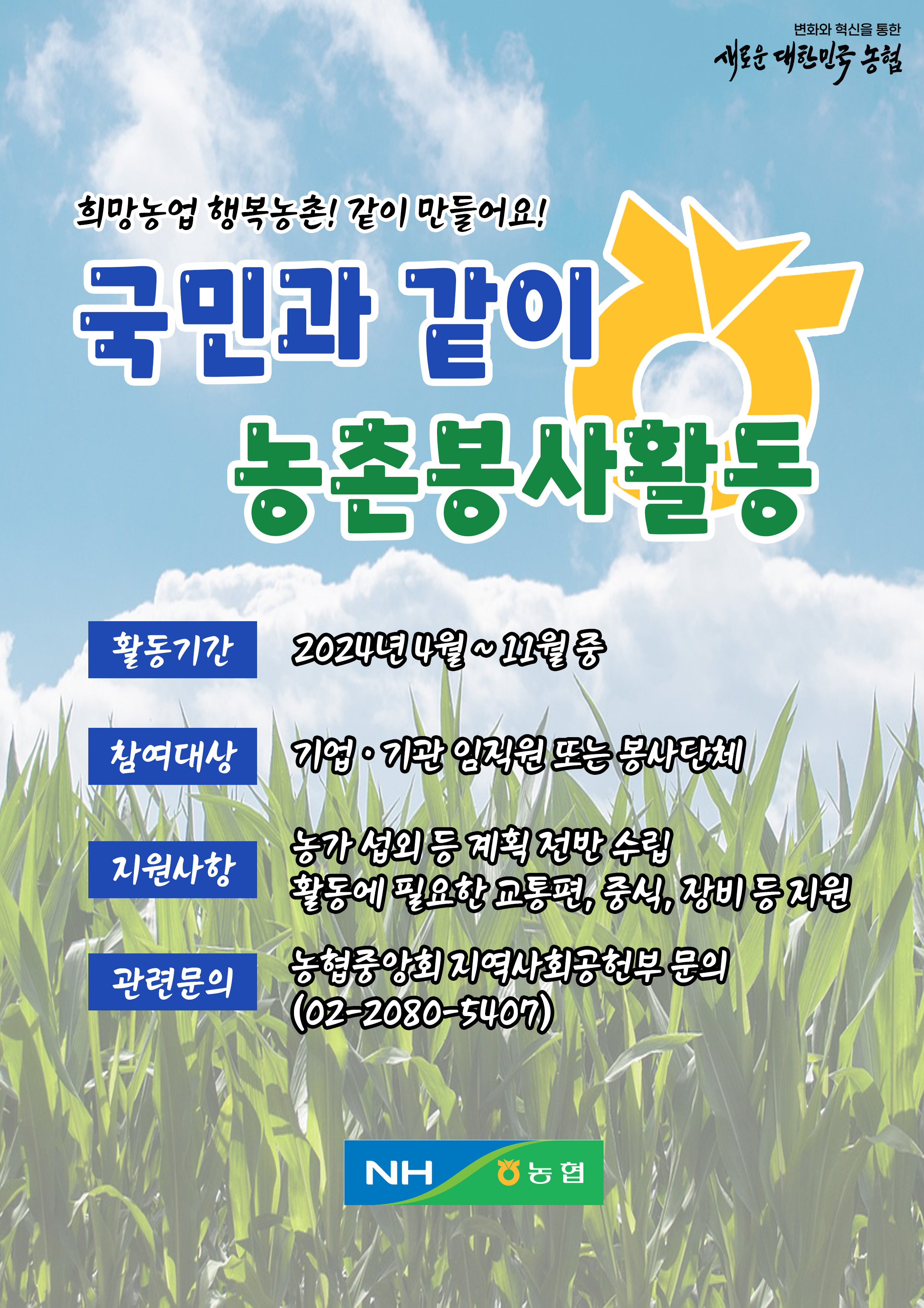사회공헌공모 [농협중앙회] 2024년 「국민과 같이 농촌봉사활동」 시행 및 참여 안내