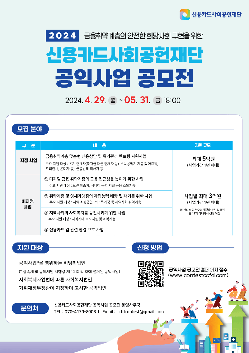 사회공헌공모 2024년 금융취약계층의 안전한 희망사회구현을 위한 신용카드사회공헌재단 공익사업 공모전