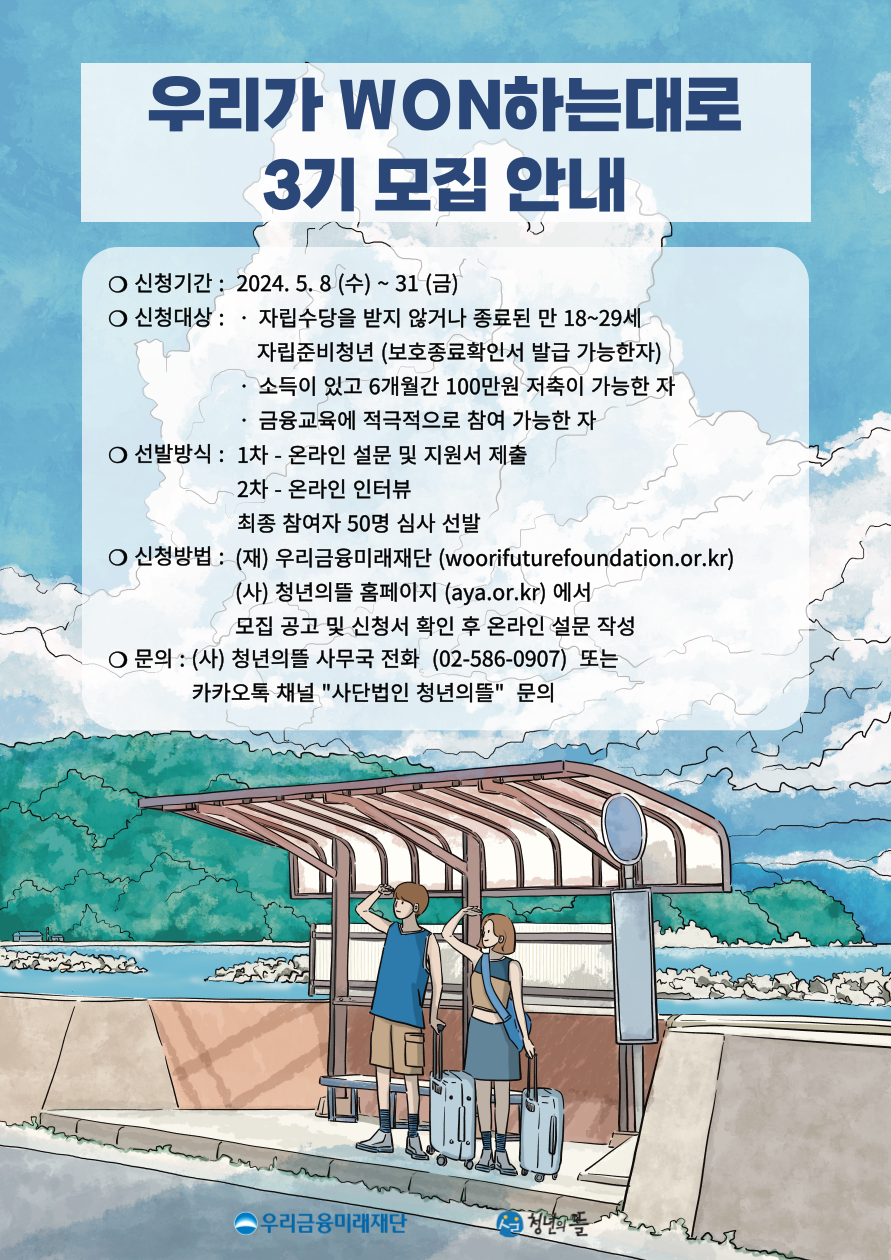 사회공헌공모 [우리금융미래재단] '우리가 WON하는대로 3기' 사업참여자 모집안내(5/8 ~ 5/31)