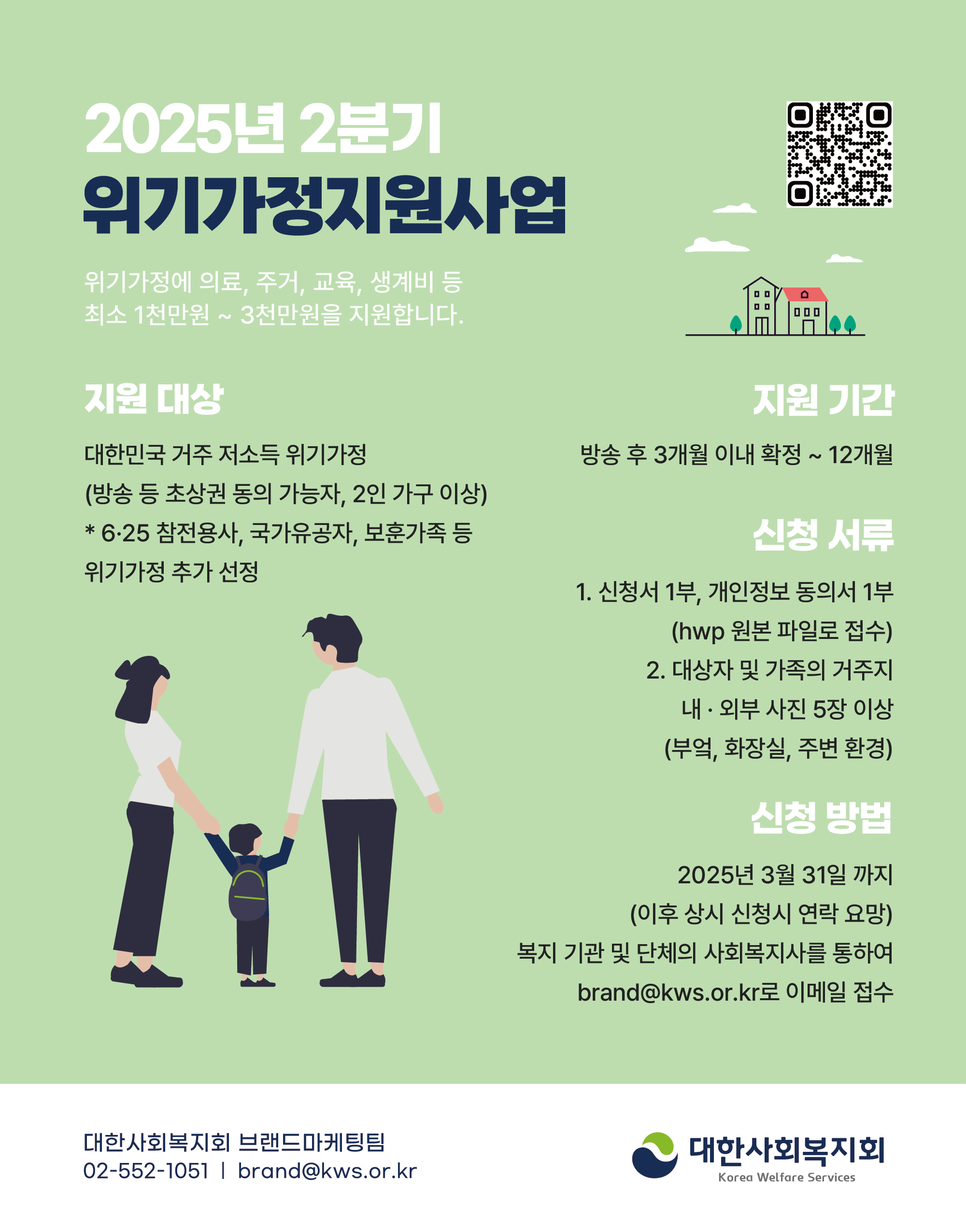 사회공헌공모 [대한사회복지회] 2025년 2분기 위기가정지원사업 안내 (~3/31)