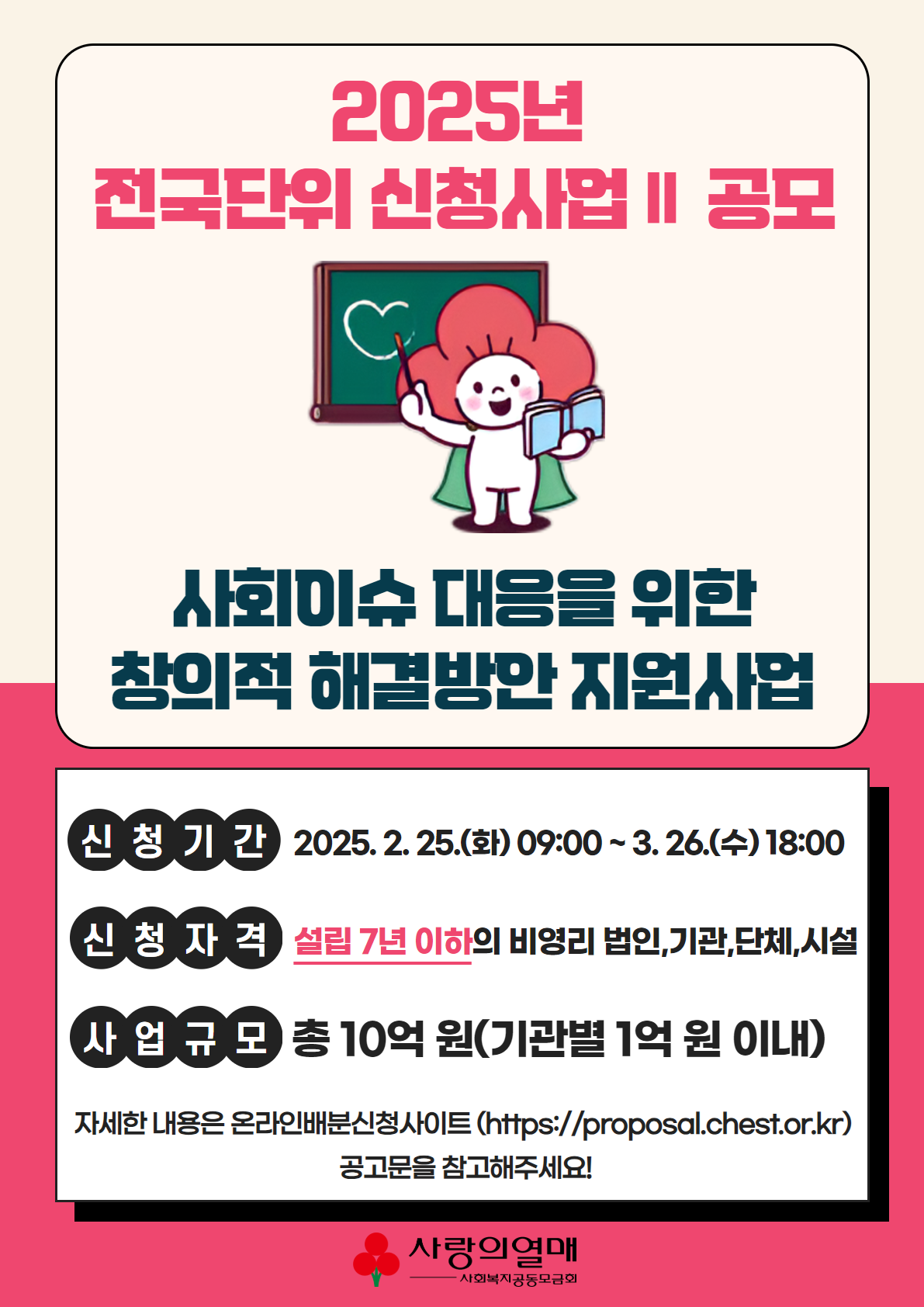 2025년에 함께 할 전국단위 신청사업 파트너 기관을 공모하오니