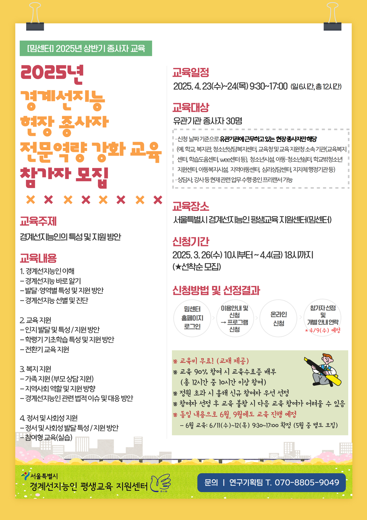 [2025년 경계선지능 현장 종사자 전문역량 강화 교육(4월) 참가자 모집]