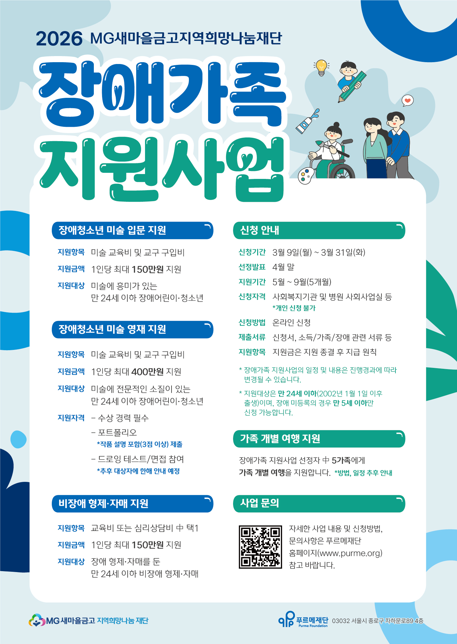 사회공헌공모 2026 MG새마을금고지역희망나눔재단 장애가족 지원사업(장애청소년 미술/비장애형제 교육, 심리)