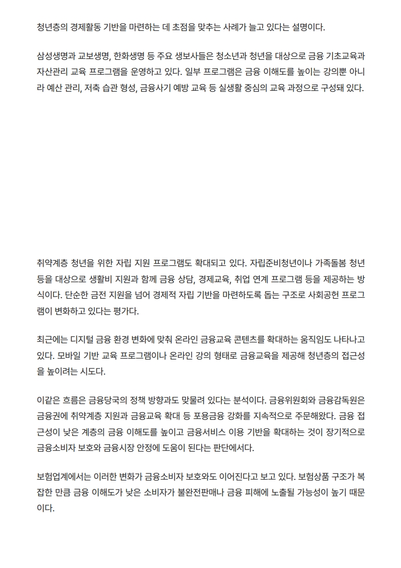 사회공헌기사 생보사 사회공헌, 기부에서 금융교육·자립 지원으로