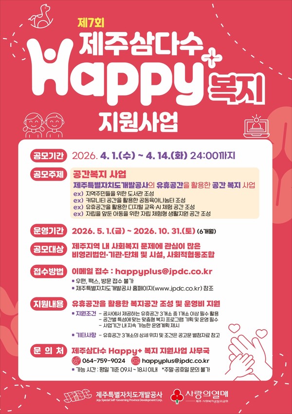 사회공헌공모 제7회 제주삼다수 Happy+ ‘공간복지사업’ 재공모 추진