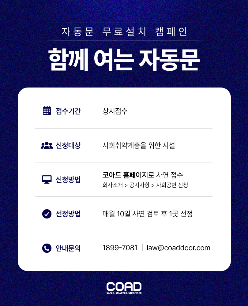 사회공헌공모 [코아드] 자동문 무료설치 캠페인